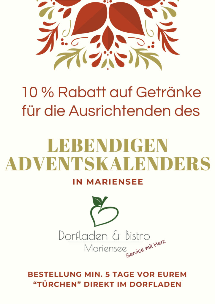 Am Donnerstag den 19.12. um 18h öffnen wir das 19. Türchen am Dorfladen Mariensee mit Gesang, Keksen und warmen Getränken.