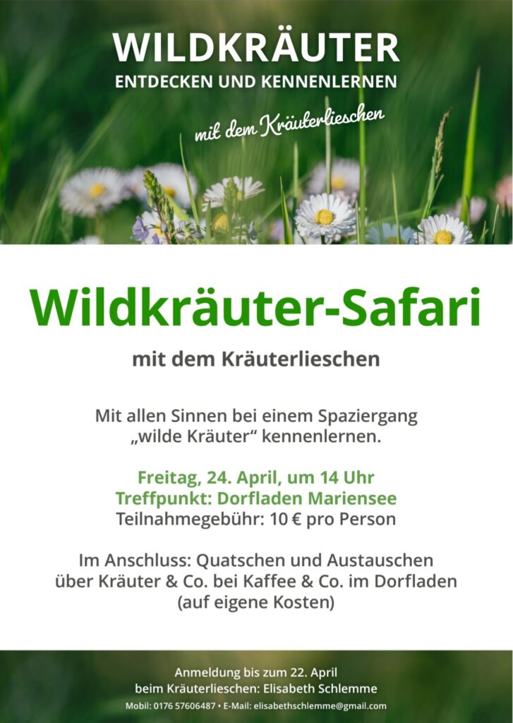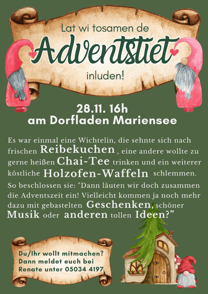Sichern Sie sich noch einen Platz und melden Sie sich bei uns ( persönlich, telefonisch oder per Mail). Der Eintritt ist frei 😉Wie angekündigt, feiert der Dorfladen Mariensee sein 5 jähriges Bestehen, vom November 2023 nach am 1. Mai am Dorfladen.