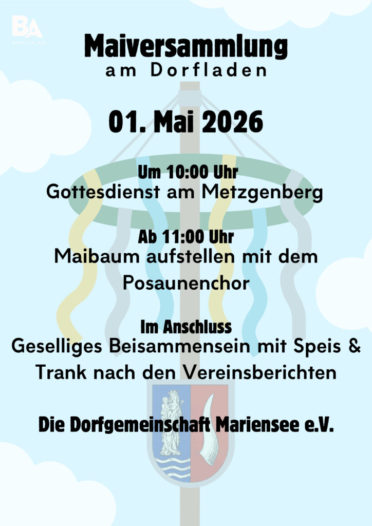 Wie gewohnt wird zunächst der Maibaum aufgestellt und in alter Tradition aus den ortsansässigen Vereinen berichtet. Anschliesend wird uns der Naturpark Steinhuder Meer das Partner-Zertifikat überreichen. Und dann gibt’s lecker Speis und Trank und Unterhaltsames. Wir freuen uns mut dem neu gegründeten Verein „Dorfgemeinschaft Mariensee e. V.“ auf schöne Begegnungen. Das Dorfladen-Team